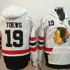 NHL Hockey Blackhawks #19 Jonathan Toews White Name & Number Pullover NHL Hoodie