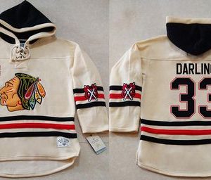 NHL Hockey Blackhawks #33 Scott Darling Cream Heavyweight Pullover Hoodie Stitched NHL Jersey