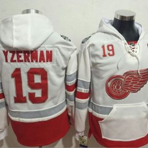 NHL Hockey Red Wings #19 Steve Yzerman White Name & Number Pullover NHL Hoodie