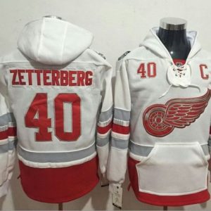 NHL Hockey Red Wings #40 Henrik Zetterberg White Name & Number Pullover NHL Hoodie