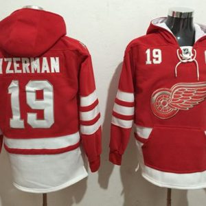 NHL Hockey Red Wings #19 Steve Yzerman Red Sawyer Hooded Sweatshirt Stitched NHL Jersey