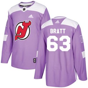 NHL Hockey Adidas Devils #63 Jesper Bratt Purple Authentic Fights Cancer Stitched NHL Jersey