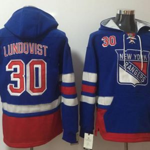 NHL Hockey Rangers #30 Henrik Lundqvist Blue Sawyer Hooded Sweatshirt Stitched NHL Jersey