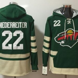 NHL Hockey Wild #22 Nino Niederreiter Green Name & Number Pullover NHL Hoodie