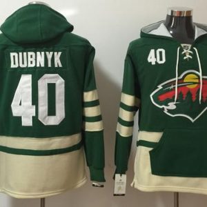 NHL Hockey Wild #40 Devan Dubnyk Green Name & Number Pullover NHL Hoodie