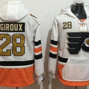 NHL Hockey Flyers #28 Claude Giroux White 3rd Name & Number Pullover NHL Hoodie