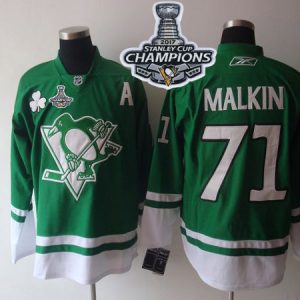 NHL Hockey Penguins #71 Evgeni Malkin Green St Patty’s Day Stanley Cup Finals Champions Stitched NHL Jersey