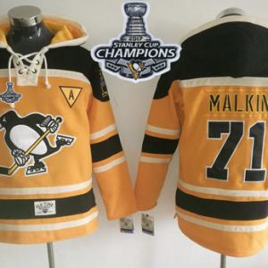 NHL Hockey Penguins #71 Evgeni Malkin Gold Sawyer Hooded Sweatshirt Stanley Cup Finals Champions Stitched NHL Jersey