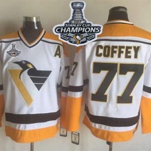 NHL Hockey Penguins #77 Paul Coffey White/Yellow CCM Throwback Stanley Cup Finals Champions Stitched NHL Jersey