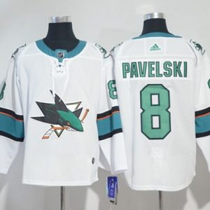 NHL Hockey Adidas Sharks #8 Joe Pavelski White Road Authentic Stitched NHL Jersey