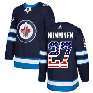 NHL Hockey Adidas Jets #27 Teppo Numminen Navy Blue Home Authentic USA Flag Stitched NHL Jersey