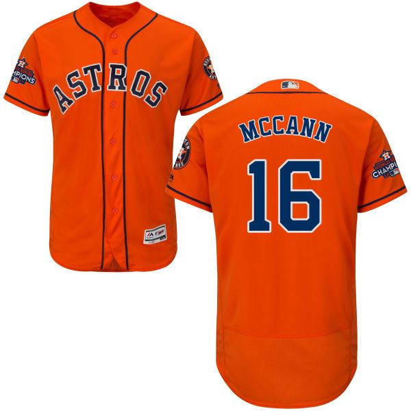 Authentic MLB Astros #16 Brian McCann Orange Flexbase Authentic Collection World Series Champions Stitched MLB Jersey