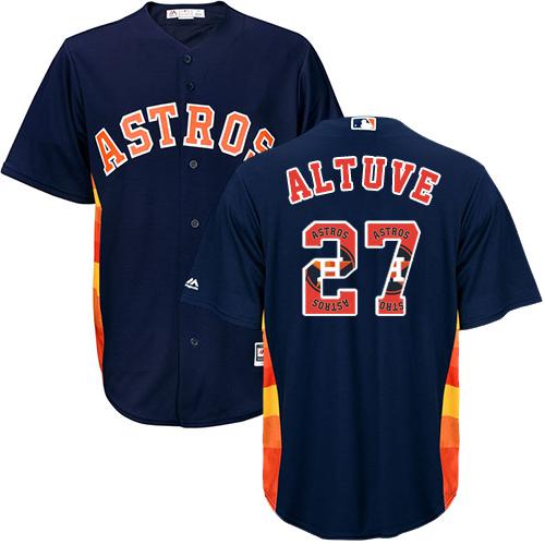 Authentic MLB Astros #27 Jose Altuve Navy Blue Team Logo Fashion Stitched MLB Jersey