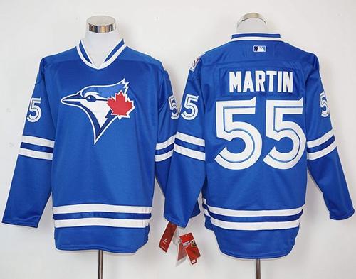 Authentic MLB Blue Jays #55 Russell Martin Blue Long Sleeve Stitched MLB Jersey
