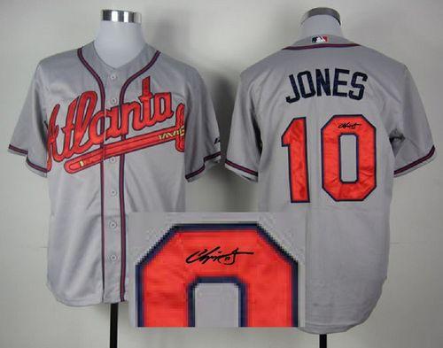 Authentic MLB Braves #10 Chipper Jones Grey Cool Base Autographed Stitched MLB Jersey
