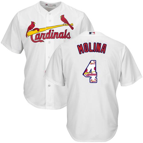 Authentic MLB Cardinals #4 Yadier Molina White Team Logo Fashion Stitched MLB Jersey