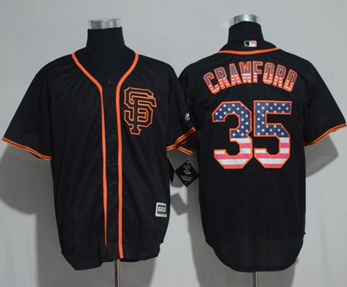 Authentic MLB Giants #35 Brandon Crawford Black USA Flag Fashion Stitched MLB Jersey