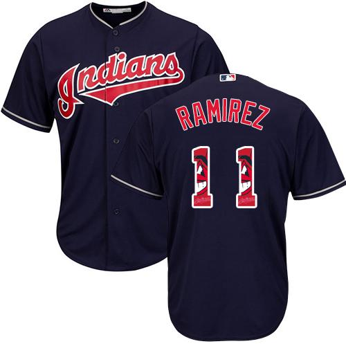 Authentic MLB Indians #11 Jose Ramirez Navy Blue Team Logo Fashion Stitched MLB Jersey