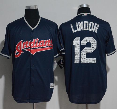 Authentic MLB Indians #12 Francisco Lindor Navy Blue Spring Training Cool Base Stitched MLB Jersey
