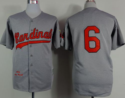 Authentic MLB Mitchell And Ness 1956 Cardinals #6 Stan Musial Grey Stitched MLB Jersey