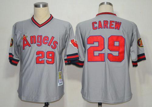 Authentic MLB Mitchell And Ness 1985 Angels of Anaheim #29 Rod Carew Grey Stitched Throwback MLB Jersey