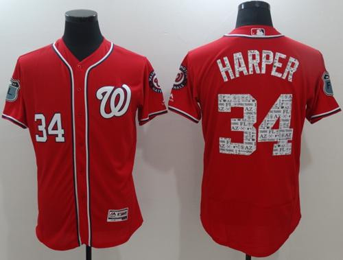Authentic MLB Nationals #34 Bryce Harper Red Spring Training Authentic Flex Base Stitched MLB Jersey
