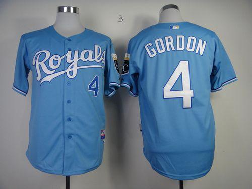 Authentic MLB Royals #4 Alex Gordon Light Blue Cool Base Stitched MLB Jersey