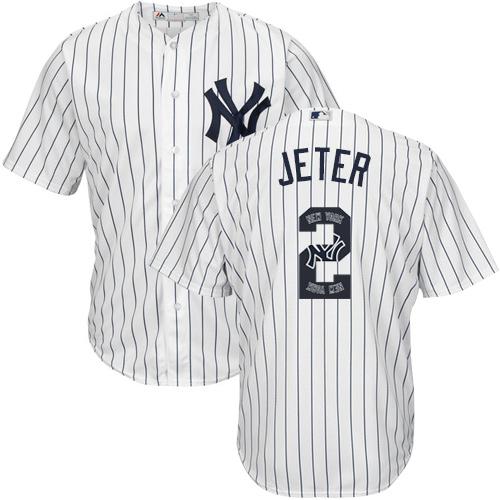 Authentic MLB Yankees #2 Derek Jeter White Strip Team Logo Fashion Stitched MLB Jersey