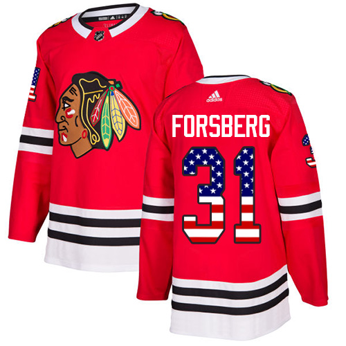 NHL Hockey Adidas Blackhawks #31 Anton Forsberg Red Home Authentic USA Flag Stitched NHL Jersey