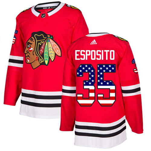 NHL Hockey Adidas Blackhawks #35 Tony Esposito Red Home Authentic USA Flag Stitched NHL Jersey