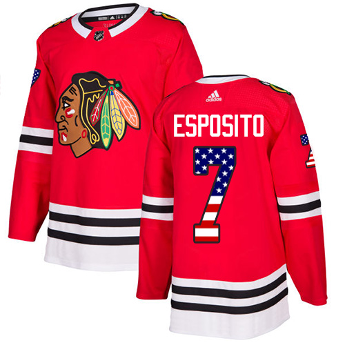 NHL Hockey Adidas Blackhawks #7 Tony Esposito Red Home Authentic USA Flag Stitched NHL Jersey