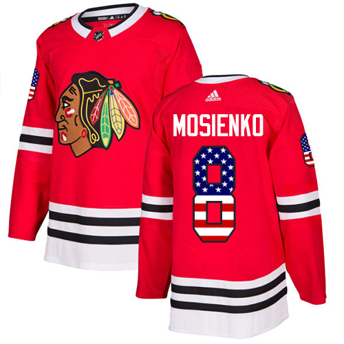 NHL Hockey Adidas Blackhawks #8 Bill Mosienko Red Home Authentic USA Flag Stitched NHL Jersey