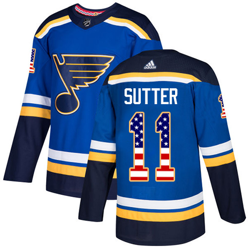 NHL Hockey Adidas Blues #11 Brian Sutter Blue Home Authentic USA Flag Stitched NHL Jersey