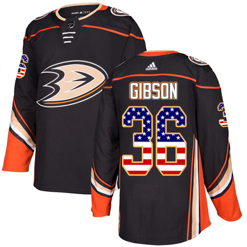 NHL Hockey Adidas Ducks #36 John Gibson Black Home Authentic USA Flag Stitched NHL Jersey