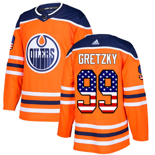 NHL Hockey Adidas Oilers #99 Wayne Gretzky Orange Home Authentic USA Flag Stitched NHL Jersey