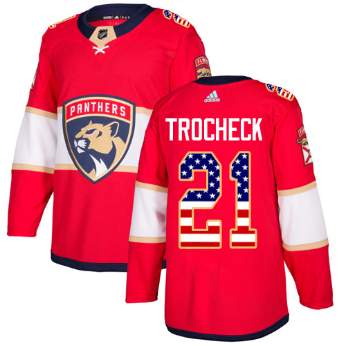 NHL Hockey Adidas Panthers #21 Vincent Trocheck Red Home Authentic USA Flag Stitched NHL Jersey