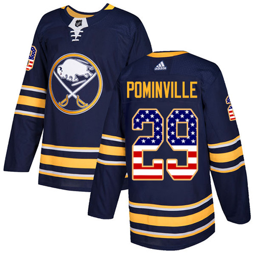 NHL Hockey Adidas Sabres #29 Jason Pominville Navy Blue Home Authentic USA Flag Stitched NHL Jersey