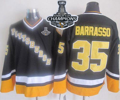 NHL Hockey Penguins #35 Tom Barrasso Black/Yellow CCM Throwback Stanley Cup Finals Champions Stitched NHL Jersey