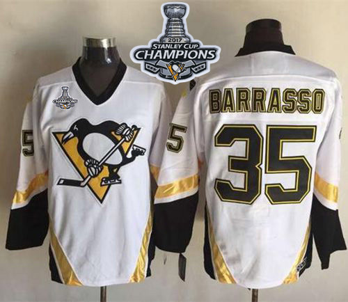 NHL Hockey Penguins #35 Tom Barrasso White CCM Throwback Stanley Cup Finals Champions Stitched NHL Jersey