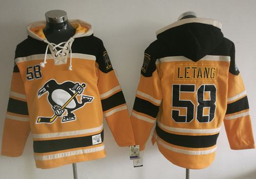 NHL Hockey Penguins #58 Kris Letang Gold Sawyer Hooded Sweatshirt Stitched NHL Jersey