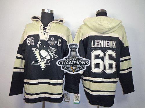 NHL Hockey Penguins #66 Mario Lemieux Black Sawyer Hooded Sweatshirt Stanley Cup Finals Champions Stitched NHL Jersey