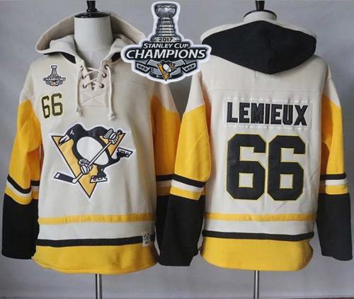 NHL Hockey Penguins #66 Mario Lemieux Cream/Gold Sawyer Hooded Sweatshirt Stanley Cup Finals Champions Stitched NHL Jersey