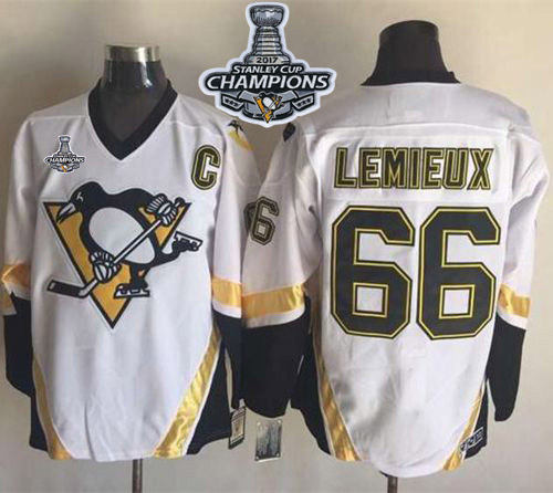 NHL Hockey Penguins #66 Mario Lemieux White CCM Throwback Stanley Cup Finals Champions Stitched NHL Jersey