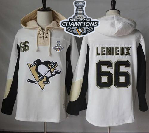NHL Hockey Penguins #66 Mario Lemieux White Pullover Hoodie Stanley Cup Finals Champions Stitched NHL Jersey