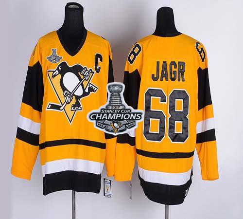 NHL Hockey Penguins #68 Jaromir Jagr Yellow CCM Throwback Stanley Cup Finals Champions Stitched NHL Jersey