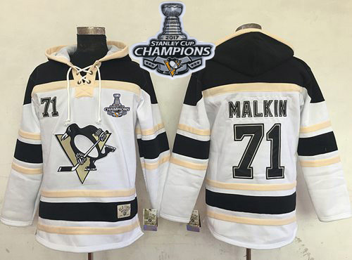 NHL Hockey Penguins #71 Evgeni Malkin White Sawyer Hooded Sweatshirt Stanley Cup Finals Champions Stitched NHL Jersey