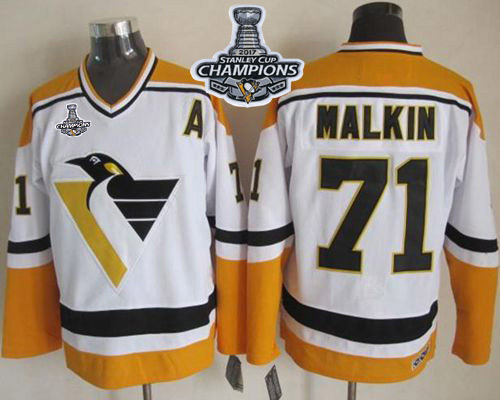 NHL Hockey Penguins #71 Evgeni Malkin White/Yellow CCM Throwback Stanley Cup Finals Champions Stitched NHL Jersey