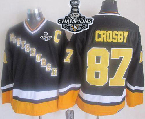 NHL Hockey Penguins #87 Sidney Crosby Black/Yellow CCM Throwback Stanley Cup Finals Champions Stitched NHL Jersey