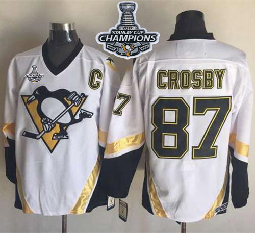 NHL Hockey Penguins #87 Sidney Crosby White CCM Throwback Stanley Cup Finals Champions Stitched NHL Jersey
