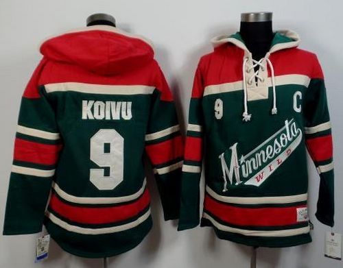 NHL Hockey Wild #9 Mikko Koivu Green/Red Sawyer Hooded Sweatshirt Stitched NHL Jersey